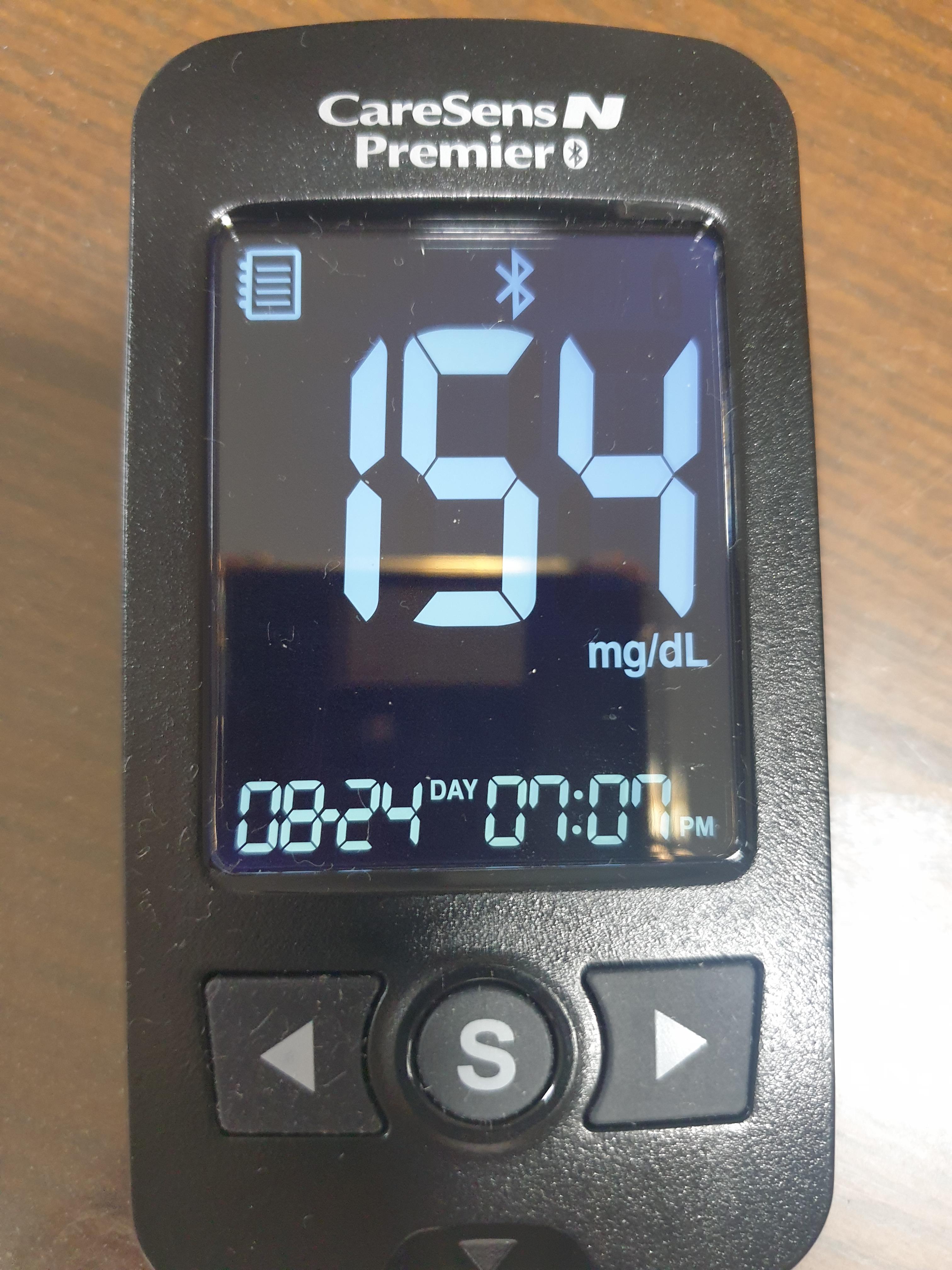 저녁 식사 2시간에서 15분전 혈당을 측정하니 154가 나왔습니다. 조금더 낮은 수치가 나올 수 있었을텐데 아무래도 저는 흰쌀밥이 혈당을 높이는데 많은 영향을 미치는 것 같아요.