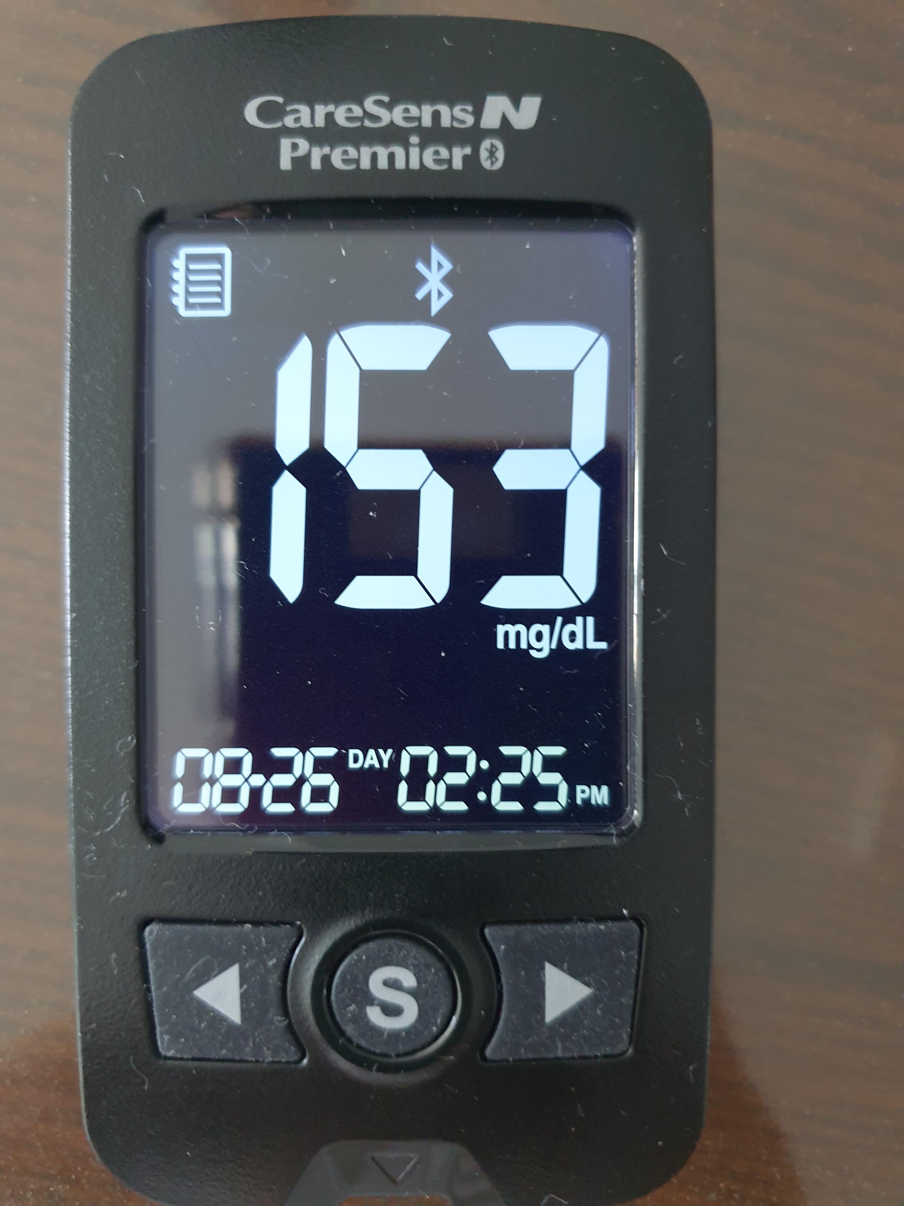 통밀 70% 빵이었지만 건크랜베리가 들어 있어 조금 달게 느껴졌습니다. 식사 후 1시간마다 1,000보씩 꾸준히 걸었습니다. 하지만 점심 식사 2시간 후 혈당은 153으로 다소 높게 나왔습니다.