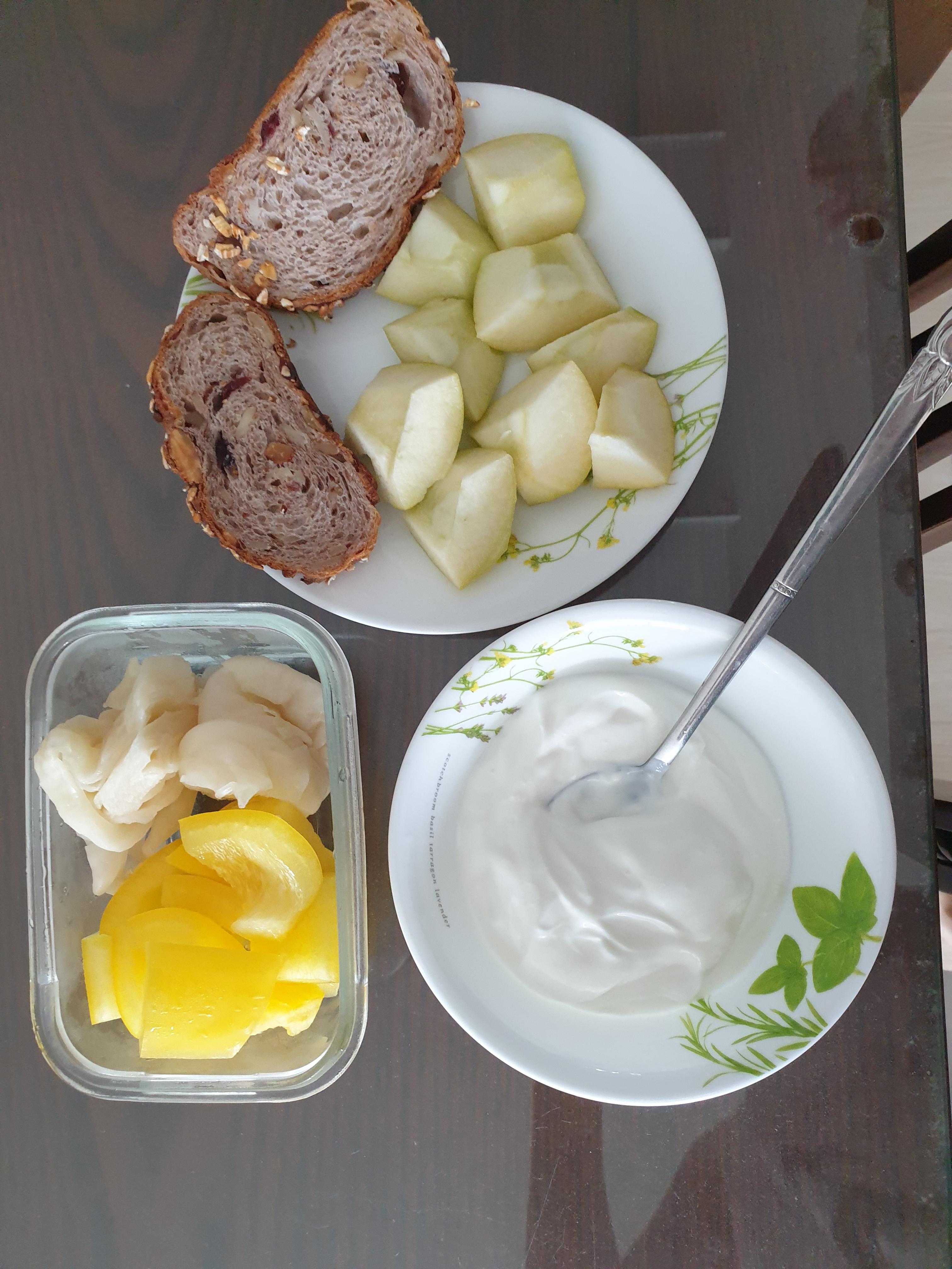 - 탄수화물 섭취: 사과와 빵은 요거트와 함께 먹었습니다.