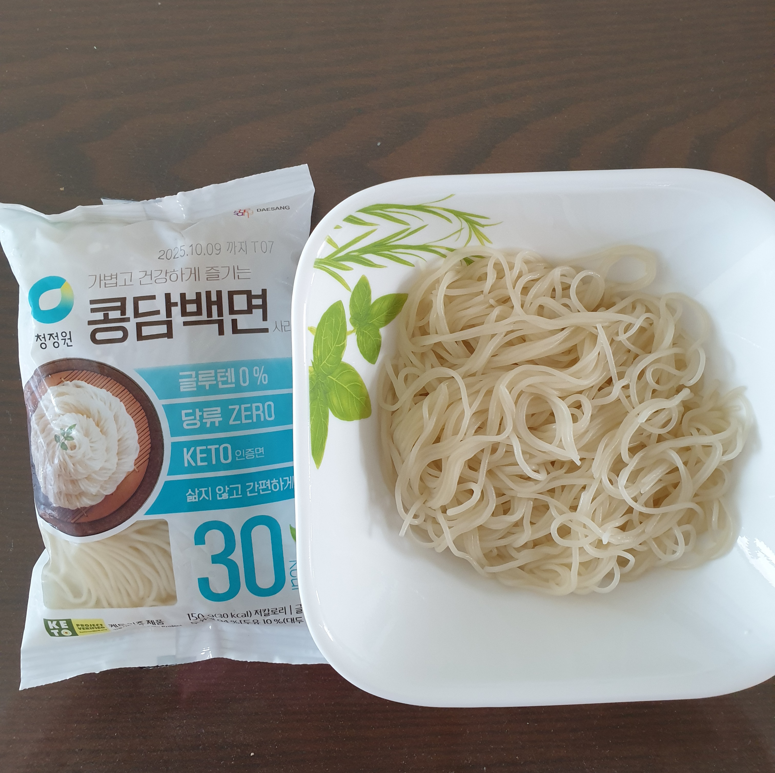 점심은 콩담백면 콩국수를 선택했습니다. 혈당 관리를 위해 **'거꾸로 식사법'**을 지키려고 노력했습니다.